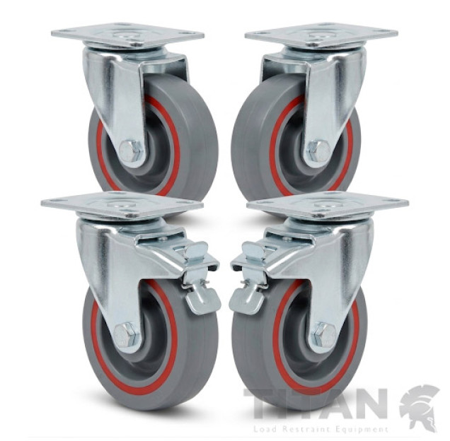 Enhance the safety, control, and performance of your roll containers, roll pallets, and roll cages with our factory-fitted 125mm sandwich castors with total stop brakes. This premium optional extra includes four sandwich castors for smooth, quiet rolling, along with two total stop brakes that lock both the wheel and swivel for maximum stability.